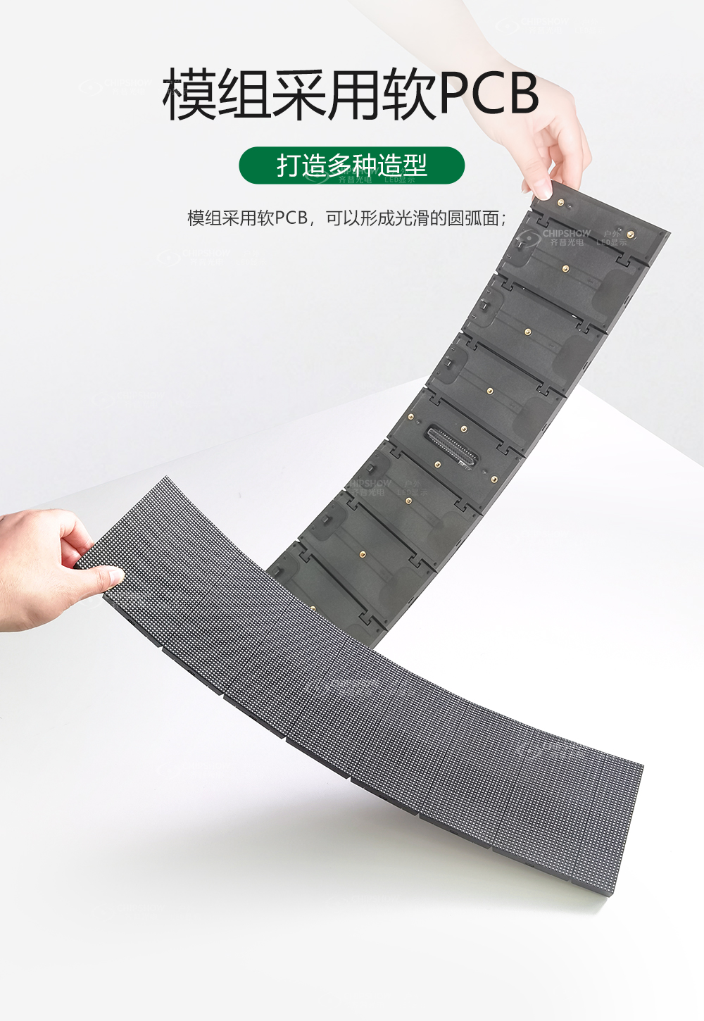 4 模组采用软PCB,可以形成光滑的圆弧面;